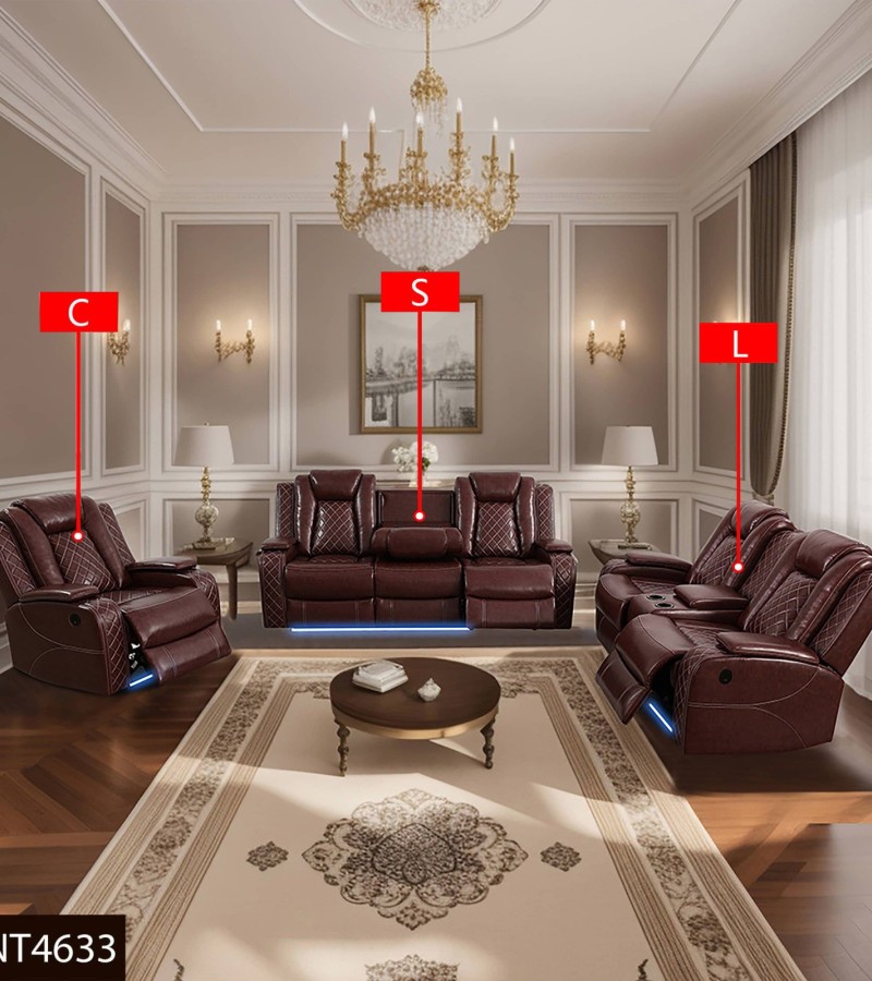 Brown Breathing Leather 3-Piece Living Room Recliner Sofa Set