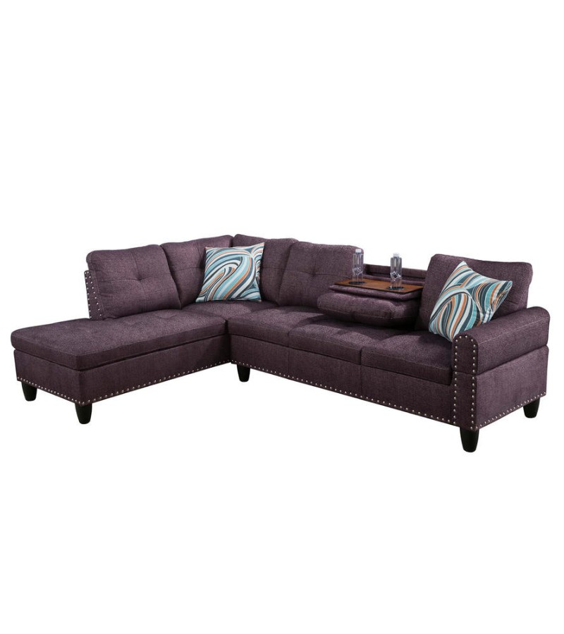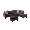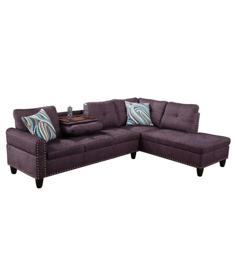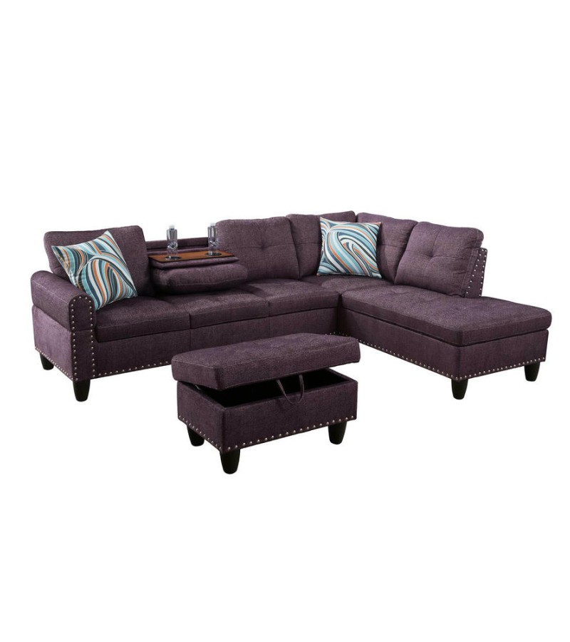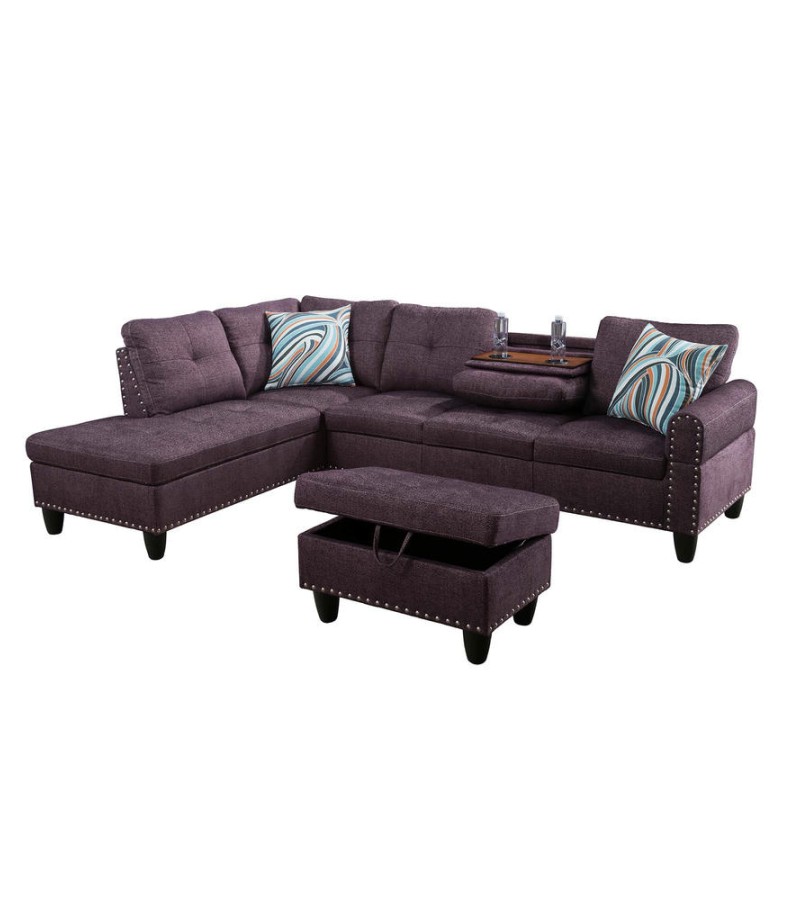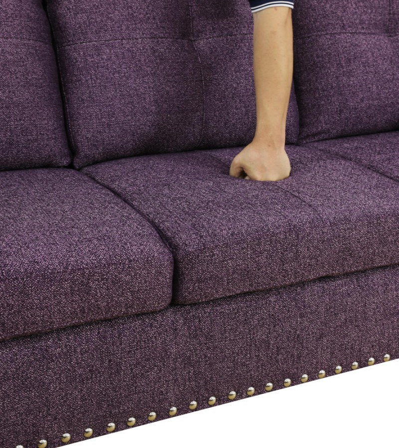 Ainehome Modern Amaranth Purple L-Shaped Sectional Sofa Set with Storage Ottoman and Nailhead Trim