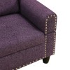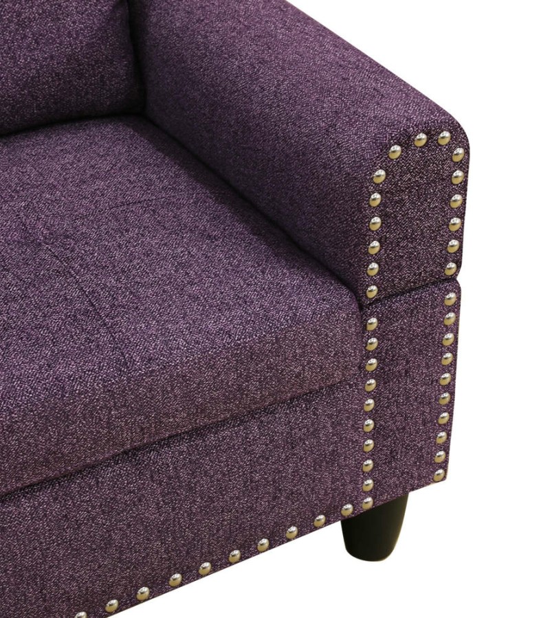 • Sophisticated Nailhead Detailing: Accented with hand-applied nickel-plated decorative copper nails. These rust-resistant silver accents trace the sofa’s silhouette, providing a brilliant contrast that enhances the rich purple upholstery.