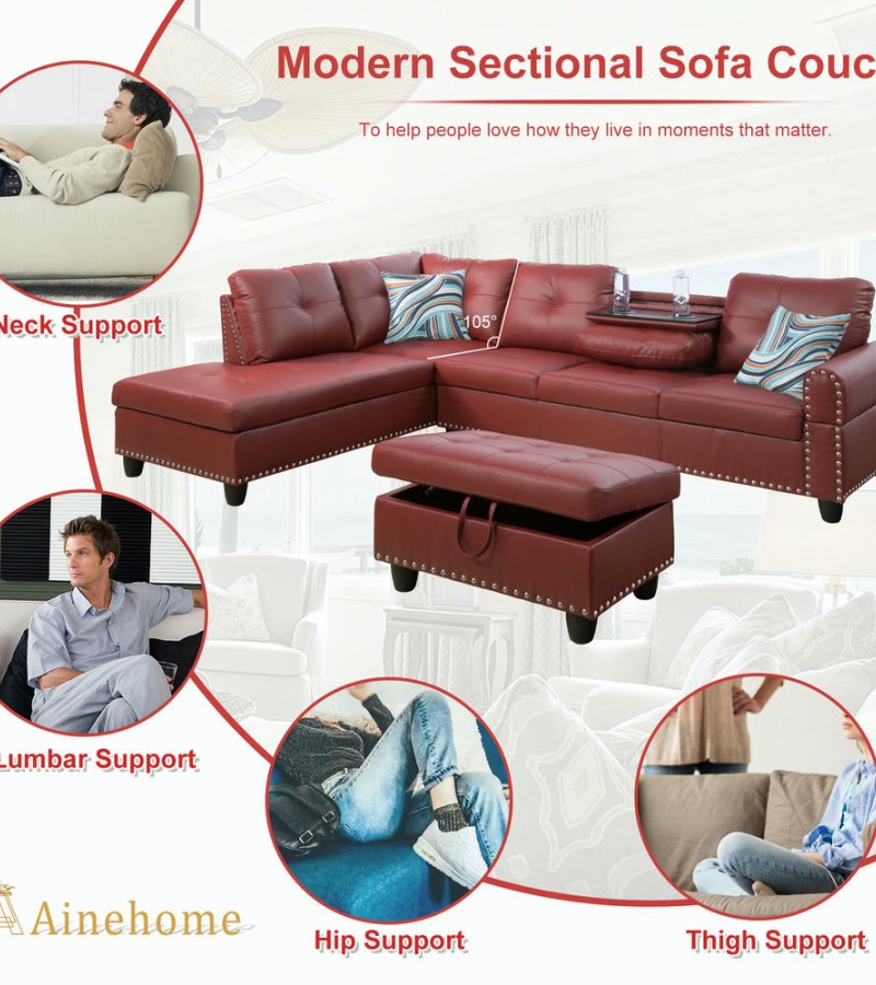 Ignite your living space with passion and style. The Ainehome 3-Piece Bold Red Faux Leather Sectional Sofa Set is a commanding centerpiece designed for those who want their home to reflect their vibrant personality. Combining a striking aesthetic with clever storage and entertainment features, this set offers a high-performance lounging experience that stands out from the crowd.