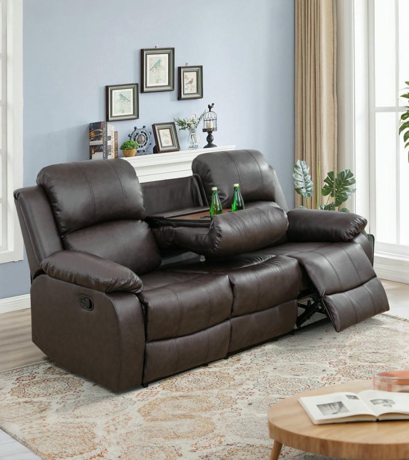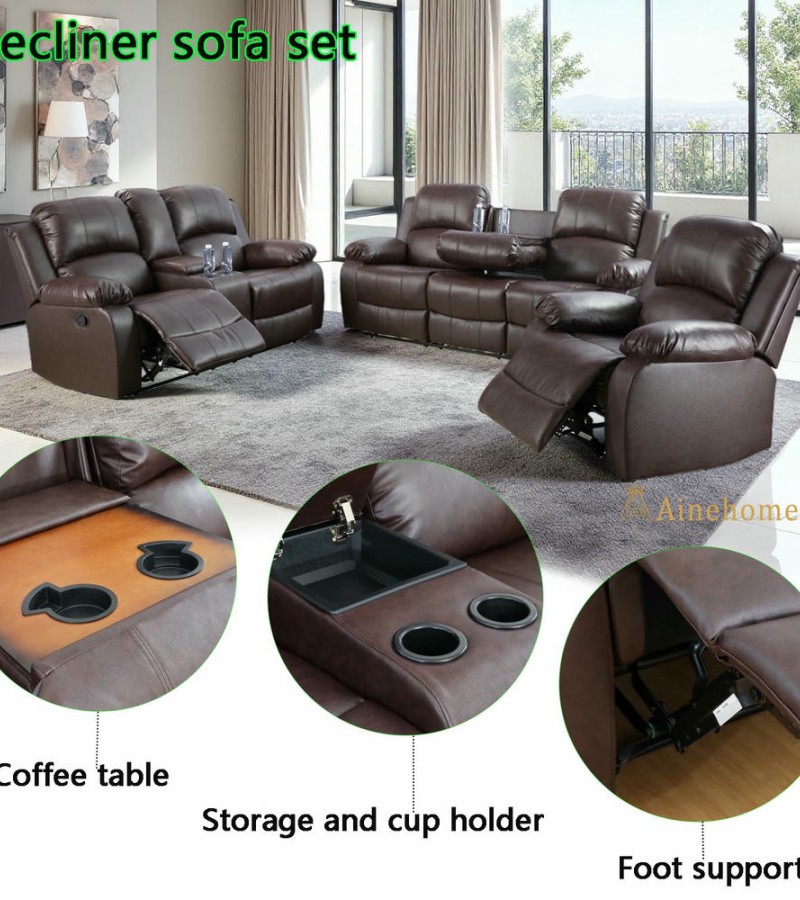 Ainehome Classic Chocolate Brown 3-Piece Intelligent Reclining Sofa Set (Breathing Leather)
