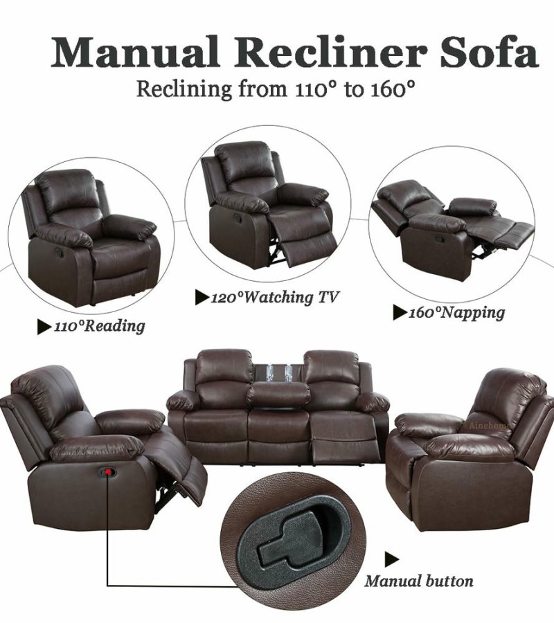 Bring timeless elegance and superior comfort to your home with the Ainehome Chocolate Brown 3-Piece Intelligent Reclining Sofa Set. Upholstered in our premium "Breathing Leather", this set offers the luxurious look of classic leather with modern technology that enhances durability and comfort.