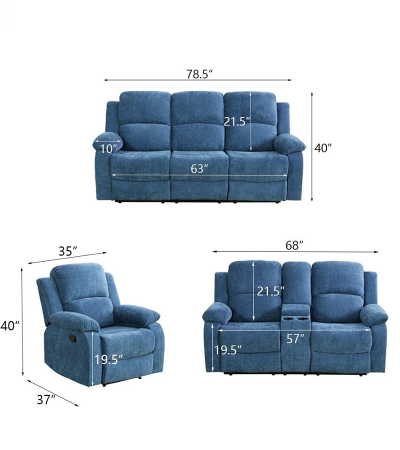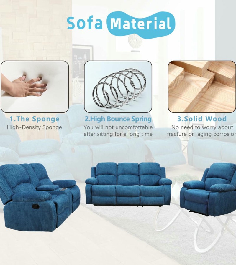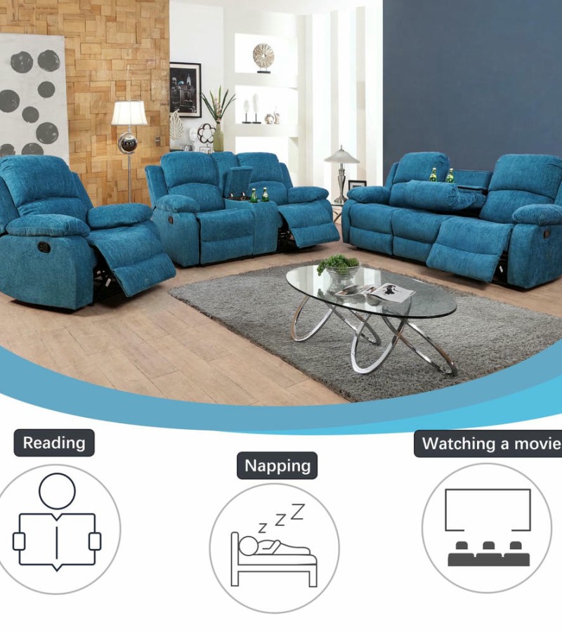 Ainehome Light Blue 3-Piece Intelligent Reclining Sofa Set (Sofa + Loveseat + Chair)