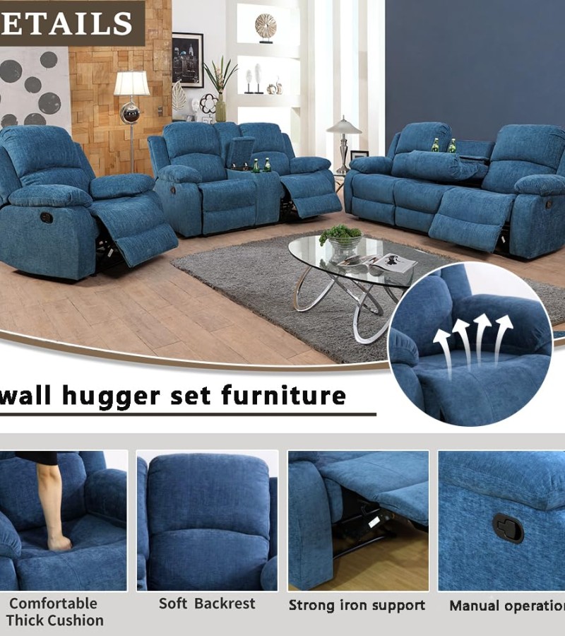 Bring a breath of fresh air into your living room with the Ainehome Light Blue 3-Piece Intelligent Reclining Sofa Set. This complete seating solution includes a sofa, loveseat, and recliner chair, all wrapped in a stunning light blue performance fabric that combines modern aesthetics with everyday durability.