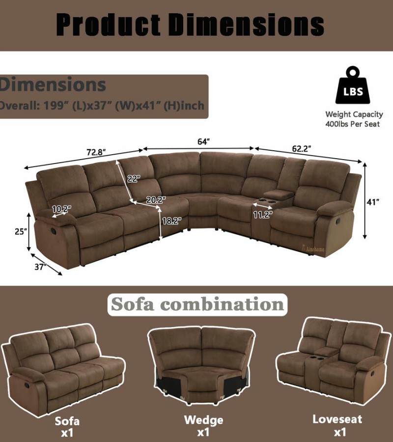 Welcome to the ultimate hub for family gatherings and home relaxation. The Ainehome GS2761 3-Piece Intelligent Reclining Sectional Sofa is expertly engineered to bring comfort and smart functionality to your living room. With its rich brown finish and ergonomic design, this set is the perfect centerpiece for your home theater or family lounge.