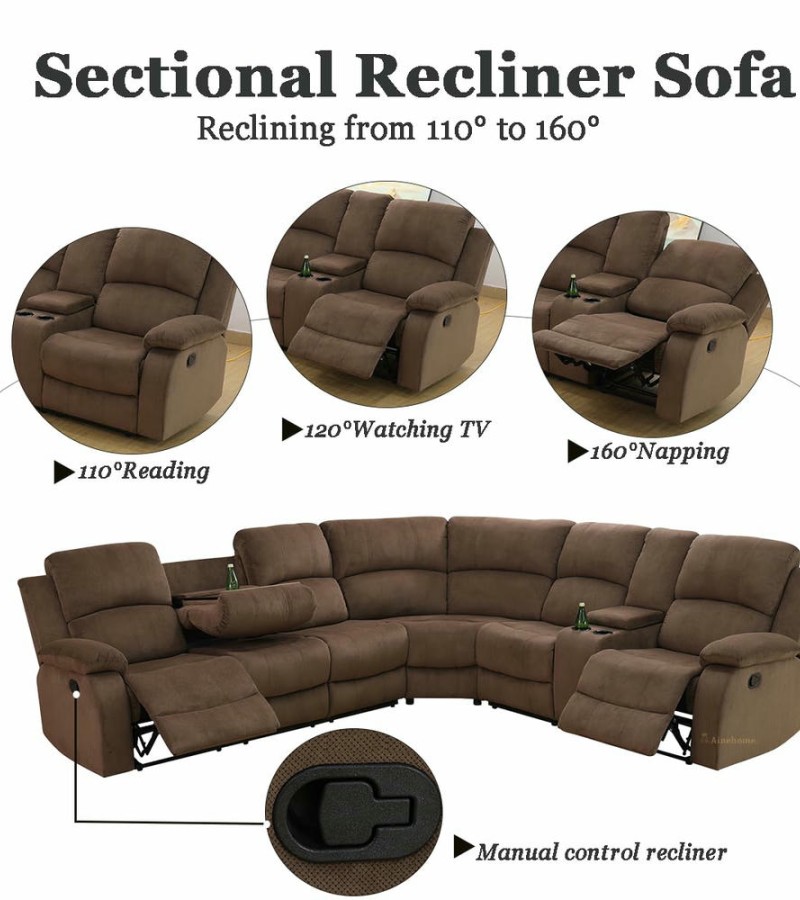 Ainehome Modern Brown 3-Piece Reclining Sectional Sofa for Living Room & Home Theater
