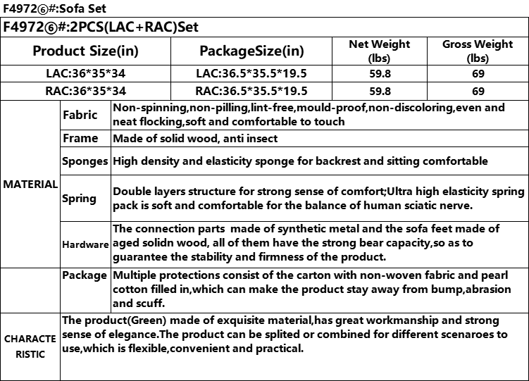 Green Corduroy 2-Piece Double Armrests Loveseat Sofa