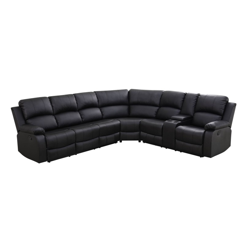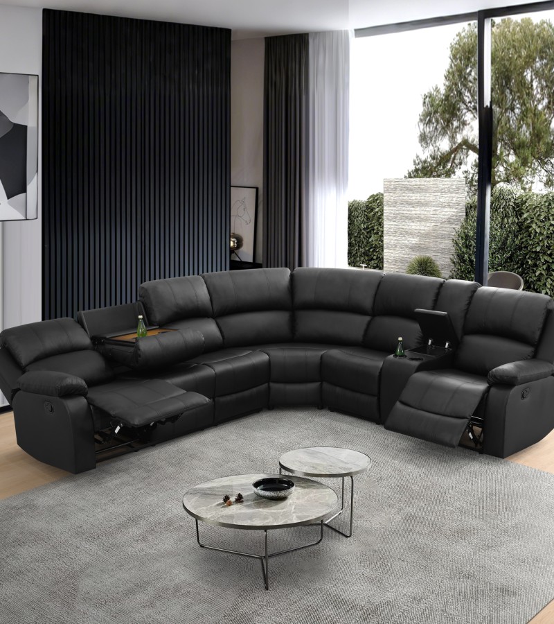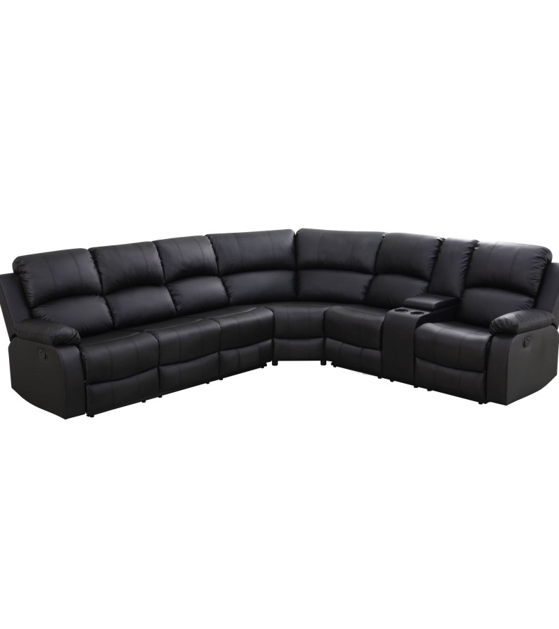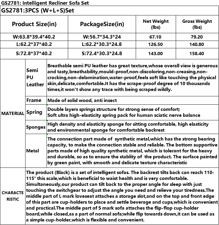 Black Breathable Semi PU Leather Living Room 3-Piece Recliner Functional Sofa Set