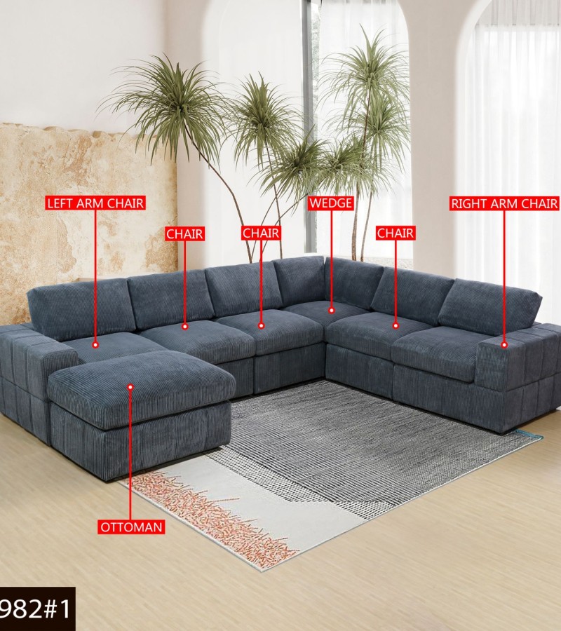Dark Grey Corduroy 7-Piece Living Room Sofa Set