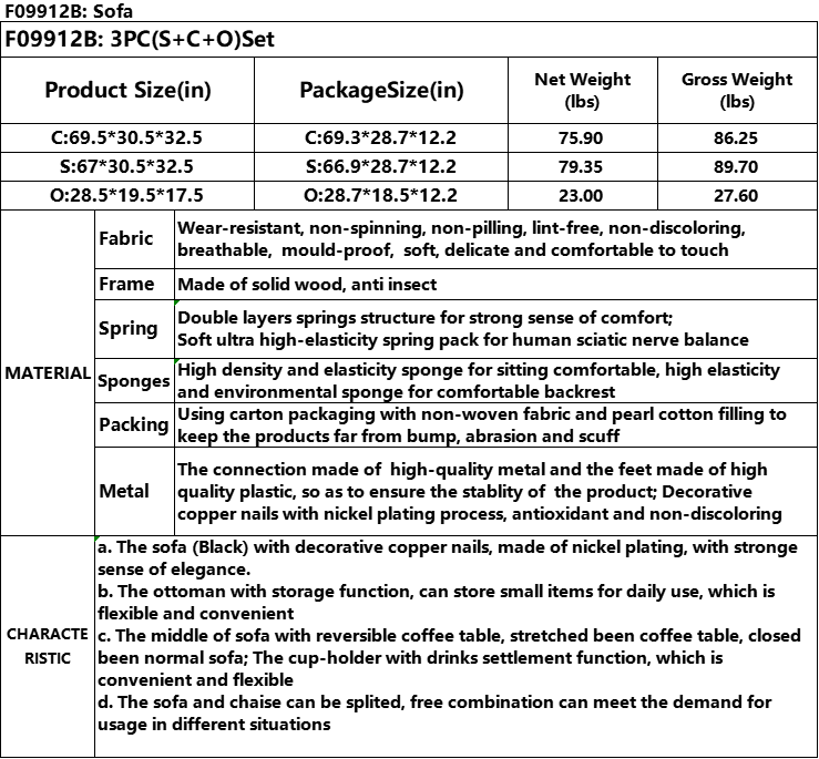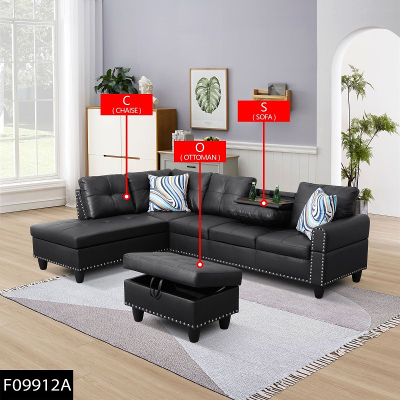 Black Faux Leather Synthetic Leather 3-Piece Sofa Set