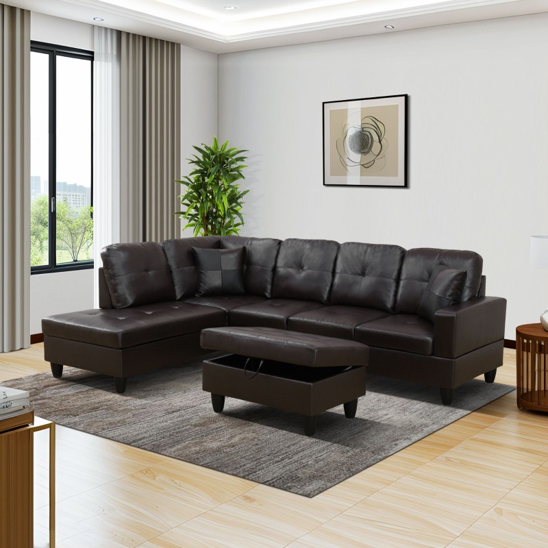 Brown Faux Leather 3-Piece Couch Living Room Sofa Set